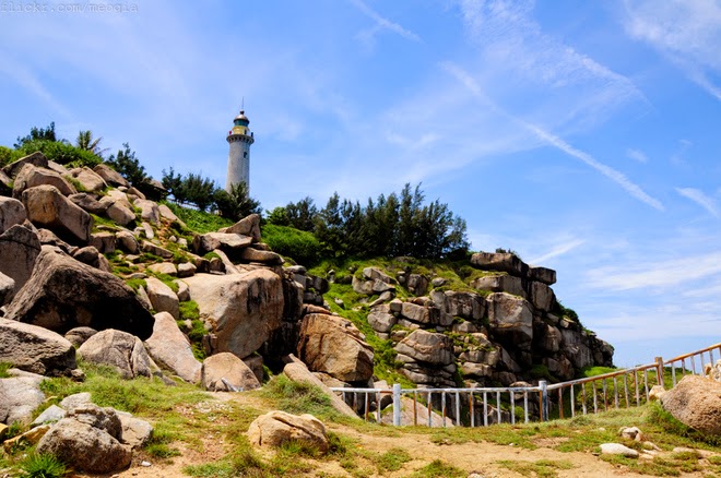 Hải đăng Đại Lãnh giữa trời xanh, được người Pháp xây năm 1890, bên trong là cầu thang gỗ 110 bậc.