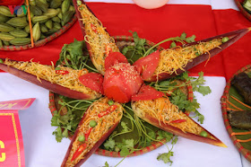 Hoa chuối rừng nộm với ớt và các loại rau thơm.